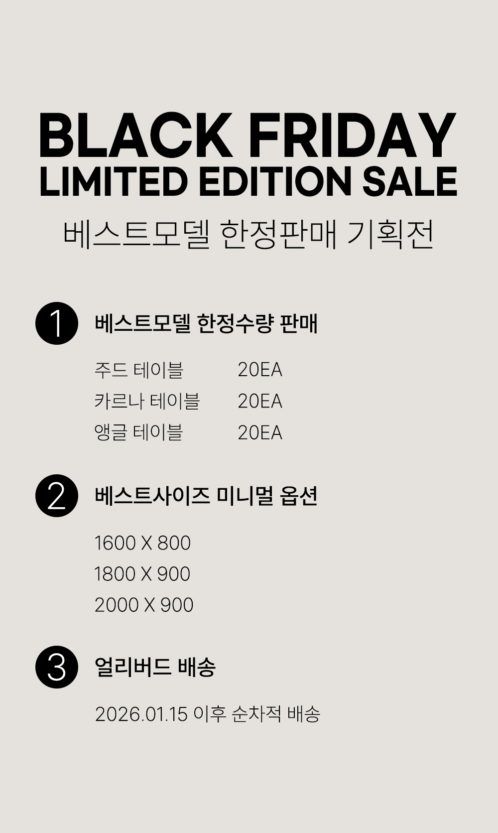 일단 너무~~~~~~ 예쁩니다!!!! :) 사실 예정일보다 조금 늦게 왔는데요.. 출고 전 조그마한 하자가 발견되어 다시 만들어주신다고 하시더라요! 사실 그냥 모른채 출고할 수도 있었을텐데 다시 만들어서 보내주시는 행동에 오히려 믿음이 갔습니다. 심지어 그동안 식탁이 없어 불편할 점을 생각해주셔서 다른 식탁을 우선적으로 사용 할 수 있도록 무상으로 보내주셨어요!!!. 서비스에 감동했구요! 식탁은 제가 상상했던대로 고급스럽고 너무 예쁩니다. 기사님들도 너무 친절하시고 관리 방법도 상세히 알려주셨습니다. 제 주변에 식탁 산다는 사람 있으면 추천해야겠어요. 알레스 뮐러! 좋은 가구 보내주셔서 감사하고 많이 파시길 바라겠습니다. :) *정보 : 1800x800