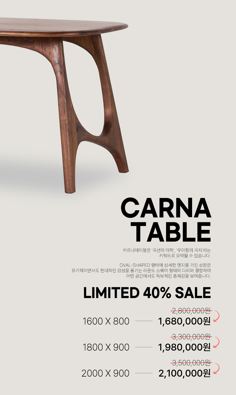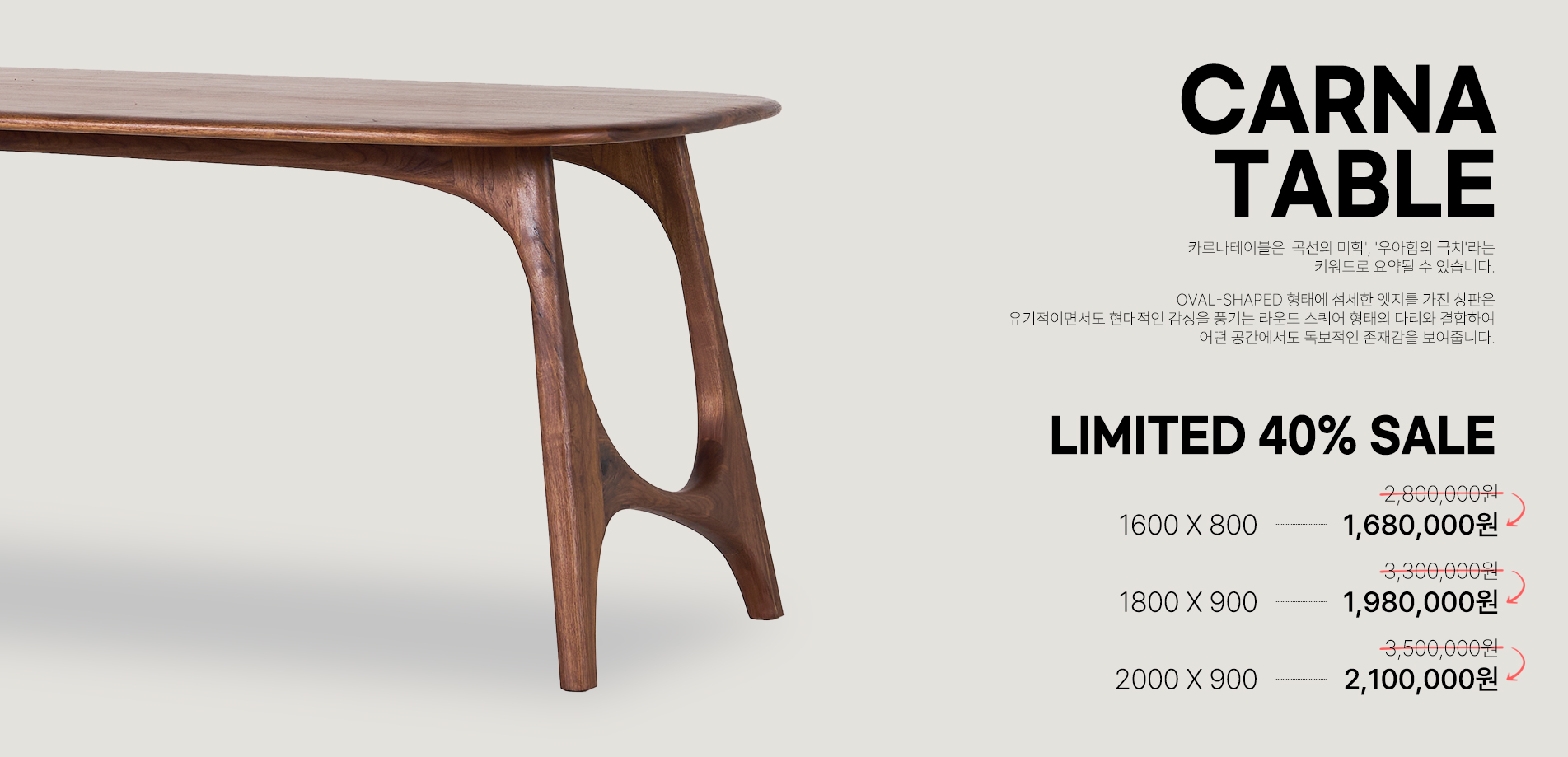 쇼룸에 가서 제품을 둘러보고 구매했습니다. 당시 카르나테이블은 없었는데, 직원분이 소개해 주셔서 보지 못했지만 아름다운 곡선에 반해서 이 제품으로 구매했습니다. 보지 못하고 구매했지만 기대를 저버리지 않게 훌륭합니다. 내구성 등을 고려하면 세라믹상판이 좋았겠지만 월넛의 고급스러움은 다른 것과 비교불가라 월넛 상판으로 구매했습니다. 상판을 만질 때마다 너무 부드러워 아직도 만질 때마다 기분이 좋습니다. 아이 피부를 만지는 것 같습니다. 로고는 상감기법으로 되어 있는 것 같은데, 목공하는 친구의 이야기를 들어보니 고난이도의 기법이라고 하더군요. 고급스러움을 더하는 것 같습니다. 2000*900 사이즈이고, 원래는 6인용이 가능한 테이블이지만 의자 4개를 두고 넉넉히 사용하는데 여유감이 있어 좋습니다. 당초 팔걸이가 있는 의자도 고려했으나, 디자인특성 상 아랫부분에 받침 등이 있어 팔걸이 있는 의자는 깊이 들어가지 않으니 구매하실 때 먼저 확인하는 것이 좋습니다. 배송해주시는 분이 배송해 주시면서 왁스로 다시 한 번 마감해주셔서, 끝까지 책임있게 제품을 챙겨주시는 것 같아 믿음이 갔어요. 사용하다가 생활기스 등 있을 때 수리 보완해 주는 서비스도 있다고 하니 잘 쓰다가 그 서비스도 이용해 볼 생각입니다. 기분 좋아지는 제품 잘 사용하겠습니다.