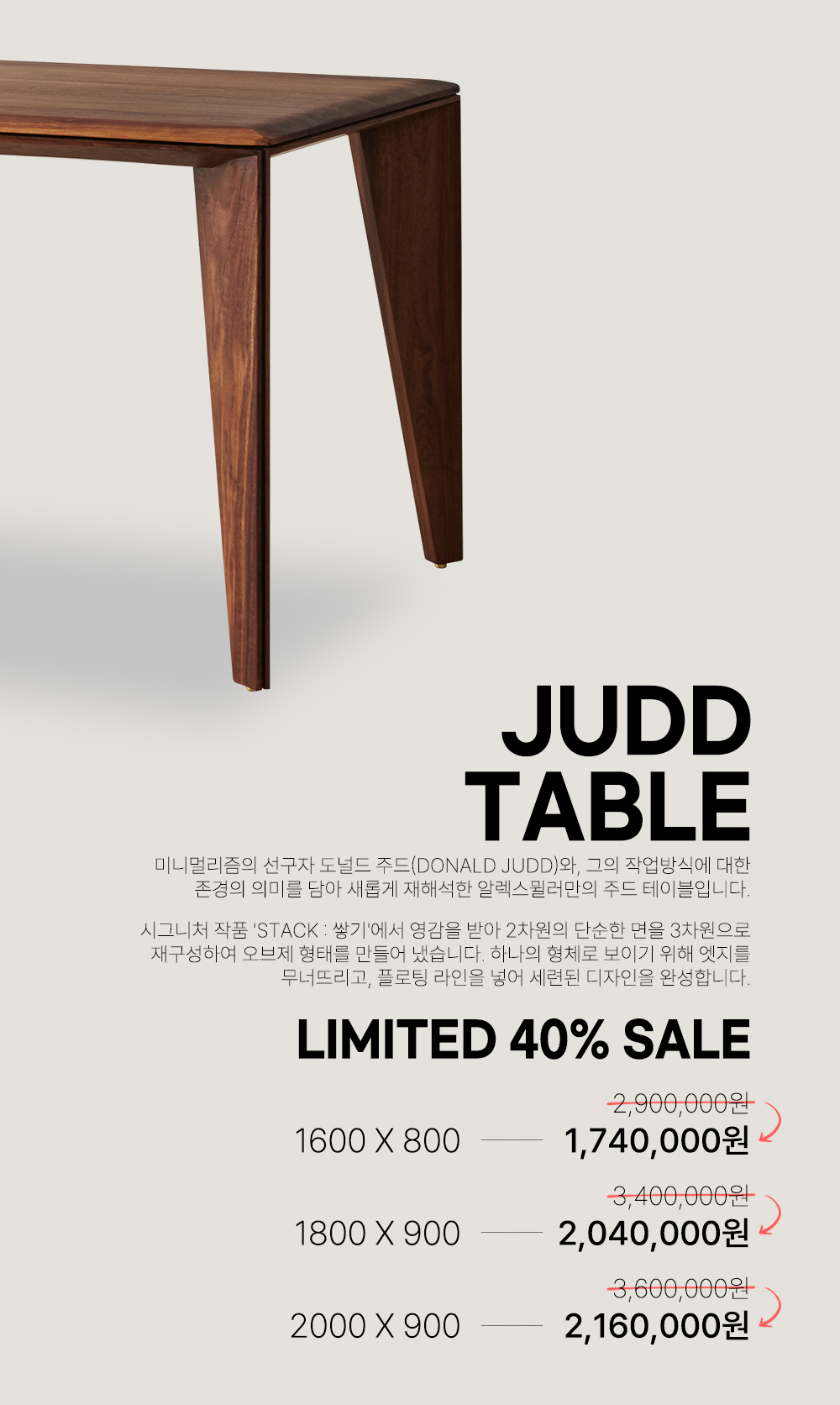 알렉스뮐러 제품을 보고 첫눈에 반해서 마음속 찜을 해두었다가 이사를 위해 집을 내놓은 날부터 어떤 테이블을 사야할까 고민했어요 저는 우아하고 따뜻한 원목의 느낌을 잘 살린 테이블을 원했고 남편은 원목의 퀄리티를 생각했어요 워낙 디자인이 수려한 알렉스뮐러라 제품을 구매하는 순간 전까지도 한참을 고민했지만 '심플이즈베스트'라는 생각으로 주드테이블 선택했어요 도착해서 우리집 거실에 있는 테이블을 보고 그동안의 고민과 저의 짝사랑이 헛되지 않았다는 것을 알았답니다 ㅎㅎ 원목 테이블의 느낌은 고급스럽게 잘 살리면서 사용자의 편의까지 생각한 테이블이라 마음에 더 드네요! 아이와 함께 이 테이블에서 보낼 많은 일들이 벌써 기대되요 우리집 테이블을 보고 부러워할 사람들의 모습도 기대되구요 :)