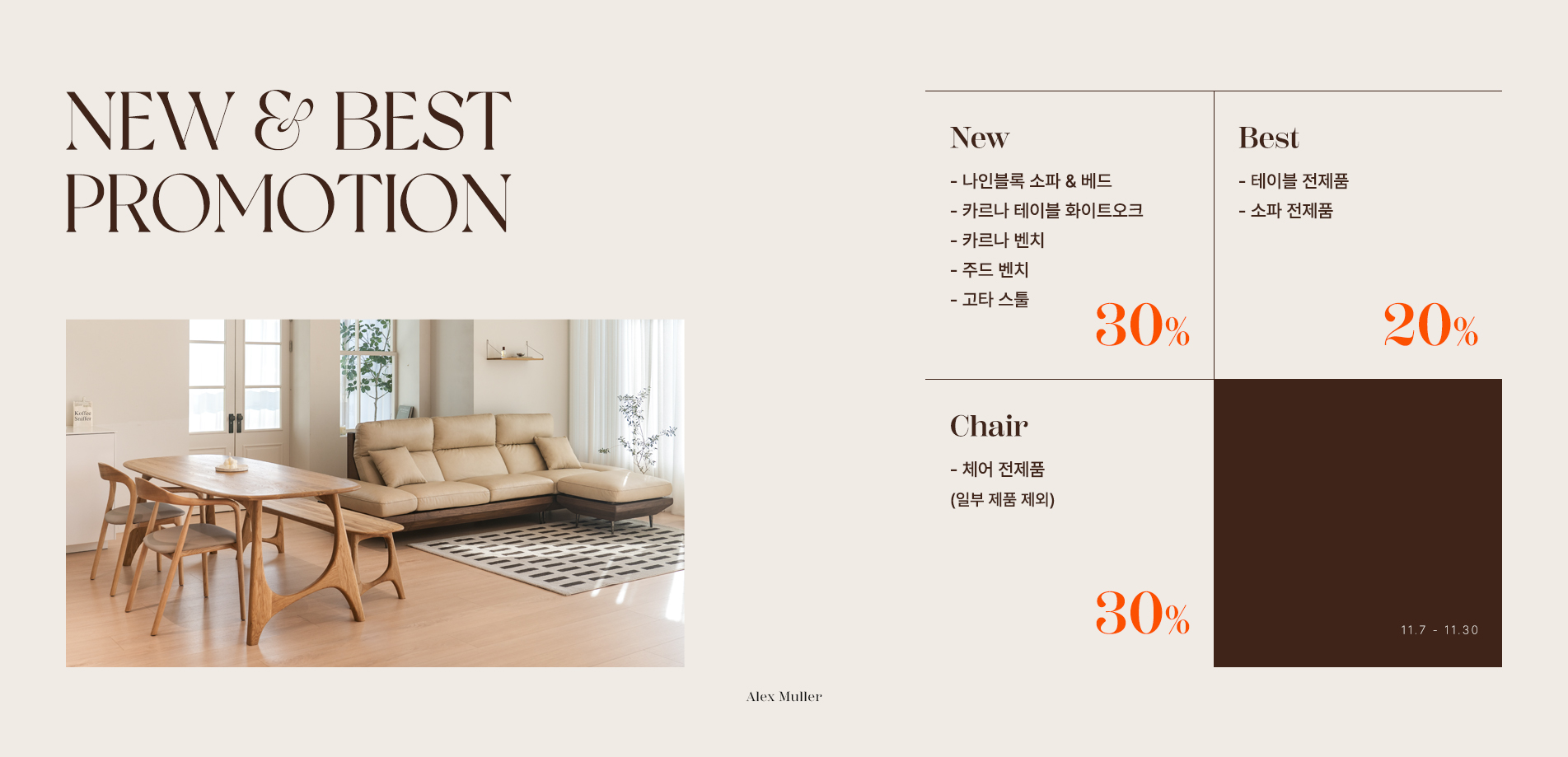제가 뷰티 인사이드라는 영화를 좋아하는 터라 원목 가구에 스며들어 이것저것 알아보다 알렉스 뮐러를 알게 되었습니다 그 후 남포동에서 친구랑 걸어 다니다가 알렉스 뮐러 쇼룸을 보게 되어 너무 놀랐던 기억이 나네요 언젠가 식탁을 사게 되면 꼭 여기 들러서 봐야지 생각했는데 올해 새 아파트에 입주하게 되면서 당장 달려가서 샀습니다 제가 이 식탁을 선택한 이유는 월넛이 주는 고급스러움과 따뜻하면서 묵직한 느낌에 반했어요 이거다! 하고 꽂힌 부분은 모서리가 너무 둥글지도 않으면서 약간 각이 있는 쉐잎이 마음에 쏙 들어서 이 디자인을 선택했습니다 또한 나름 놀랬던 점이 있는데 의자가 다른 브랜드랑 다르게 가격도 좋으면서 정말 편안하고 멋스럽더라구요 의자 디자인도 다 이뻐서 쇼룸에서 들고 나르며 고르느라 애먹었습니다 기대가 많았던 만큼 받고 난 후 나뭇결도 돋보이고 내구성도 튼튼해 보여서 좋네요 특히 다리 부분에 각이 진 부분이 저희 집이랑 너무 잘 어울려 감탄했어요 자세히 볼수록 포인트 삼을 만한 부분이 많아 더 만족 중입니다 관리 키트까지 신청해서 오래도록 이쁘게 관리하며 사용할 예정이에요 !