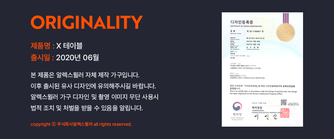 보이는 것 이상의 높은 제작 난이도를 자랑하는 TYPE X는 많은 기술력을 바탕으로 간결한 X자 형태의 하부 구조를 만들어 냈습니다. 군더더기 없는 디자인은 취향을 타지 않고 모든 공간과 조화를 이룹니다.