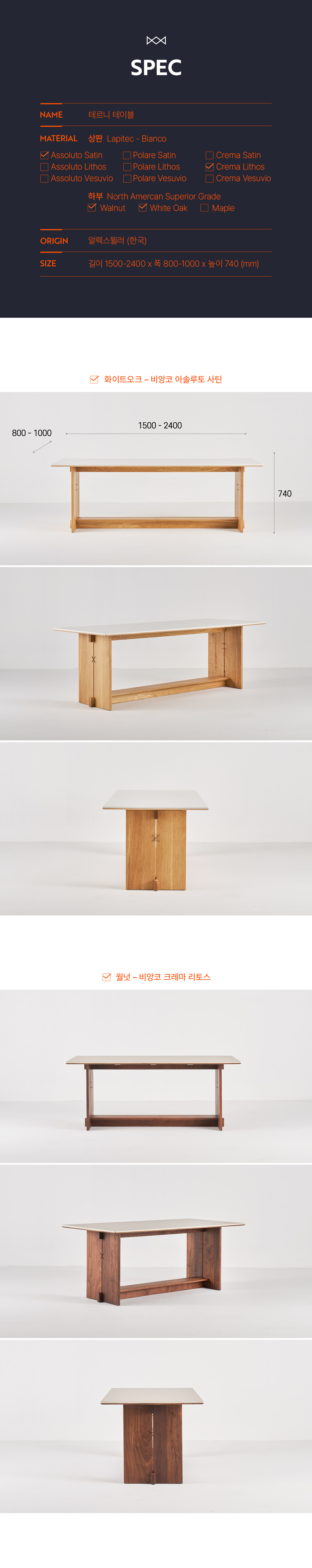 - 하부 : 북미산 월넛, 화이트오크, 메이플 중 선택 (FAS 등급)
