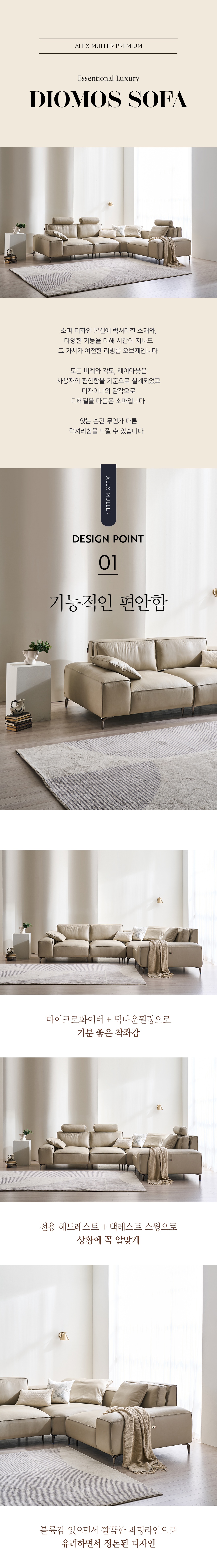소파 디자인 본질에 럭셔리한 소재와 다양한 기능을 더해 시간이 지나도 그 가치가 여전한 리빙룸 오브제입니다. 모든 비례와 각도, 레이아웃은 사용자의 편안함을 기준으로 설계되었고 디자이너의 감각으로 디테일을 다듬은 소파입니다. 앉는 순간 무언가 다른 럭셔리함을 느낄 수 있습니다.