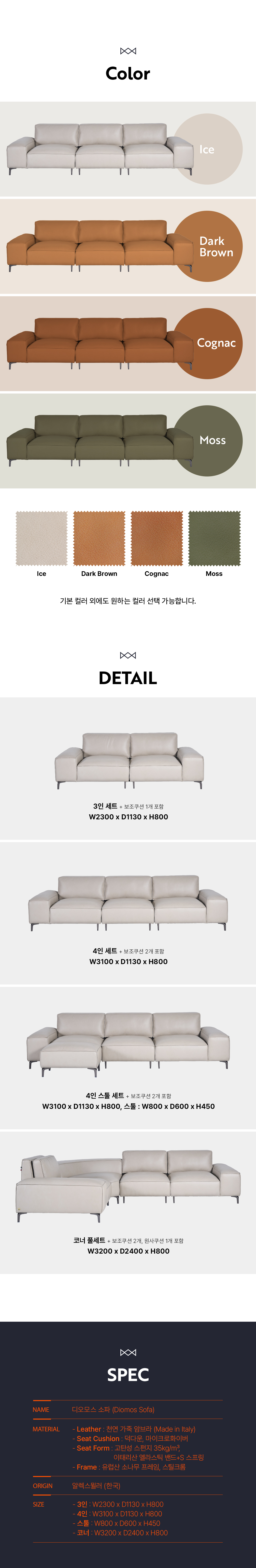 - Seat Form : 고탄성 스펀지 35㎏/㎥, 이태리 엘라스틱 밴드+S 스프링
